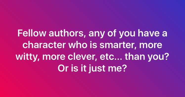 However… sometimes, when I’m in the zone and letting the story flow through me (instead of trying to shape it myself) the character will say something really clever.