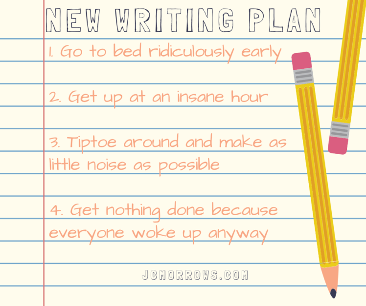 January is nearly over and I have yet to get ahead, much less catch up. So, in my quest to find some quiet time, and in an effort to increase my writing output–in a house filled with people who take turns needing me at invariably the moment I’ve finally managed to re-immerse myself in the story world, I made the [quite possibly insane] decision to get up at an hour when some authors are just crawling into bed. And, yes, I was one of those authors not too many years ago.